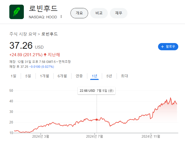 로빈후드(Robinhood)는 미국의 대표적인 핀테크 기업으로, 개인 투자자들을 위한 수수료 없는 주식, ETF, 옵션, 암호화폐 거래 플랫폼을 제공합니다. 특히 젊은 세대 투자자들 사이에서 압도적인 인기를 끌며, 투자 시장에 혁신을 불러온 회사로 평가받고 있습니다.