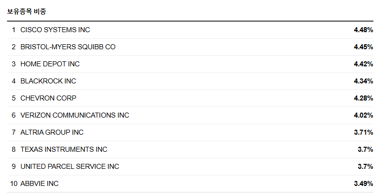 | VYM | 0.06% | 3.0% | 고배당 종목 중심 |